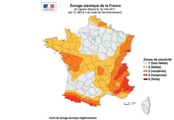 Comme l’illustre la carte de sismicité ci-dessus, notre région est en la matière classée de modérée à moyenne, ce séisme nous le rappelle…