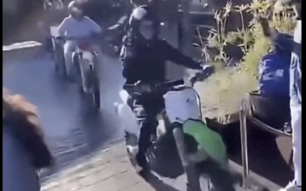 Sur des vidéos partagées sur les réseaux sociaux (photo saisie d’écran), on aperçoit plusieurs motards rouler à toute vitesse au milieu des clients empruntant les allées menant aux commerces et aux restaurants et particulièrement effrayés, comme on peut s’en douter.