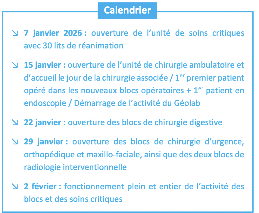 Interface d’entrée et de sortie unique pour tous les flux logistiques destinés à l’activité opératoire, le Géolab entrera en service le 15 janvier, date de la première intervention chirurgicale dans les nouveaux blocs opératoires.