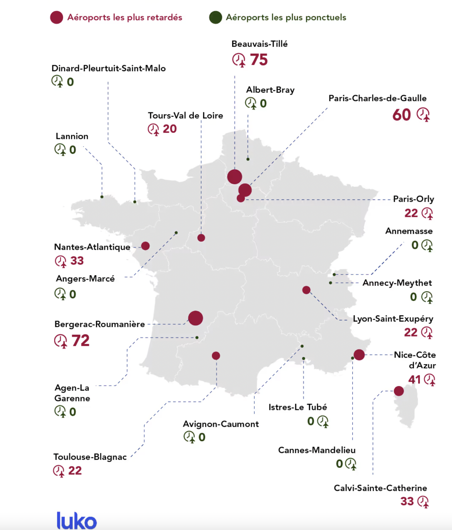 A comparer cependant avec Paris Charles de Gaulle (60 mn) et Nice Côte d’Azur (41 mn de retard).
