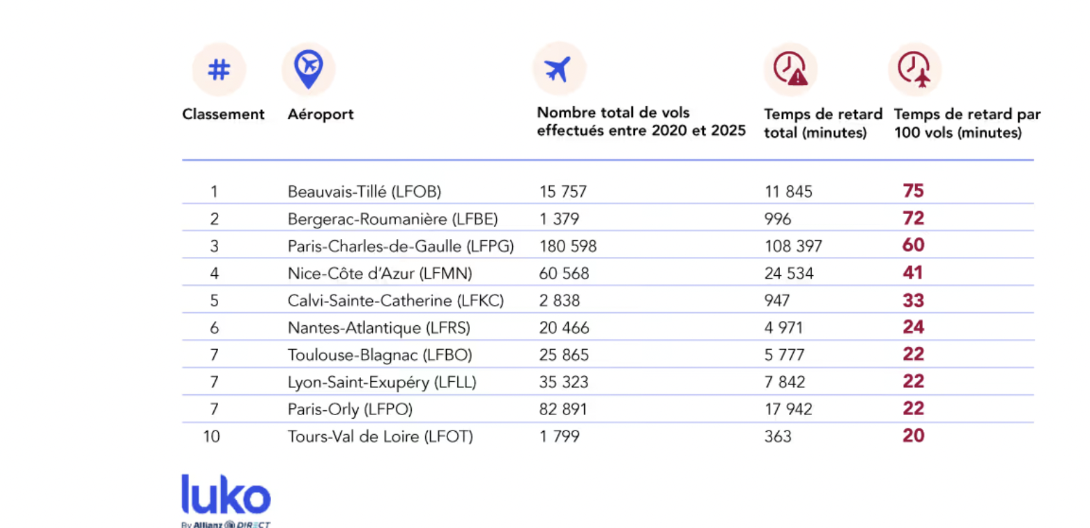 L’aéroport Lyon-Saint-Exupéry figure dans le top 10 des plateformes françaises les plus concernées par les retards au départ, d’après une étude que vient de publier Luko by Allianz Direct.