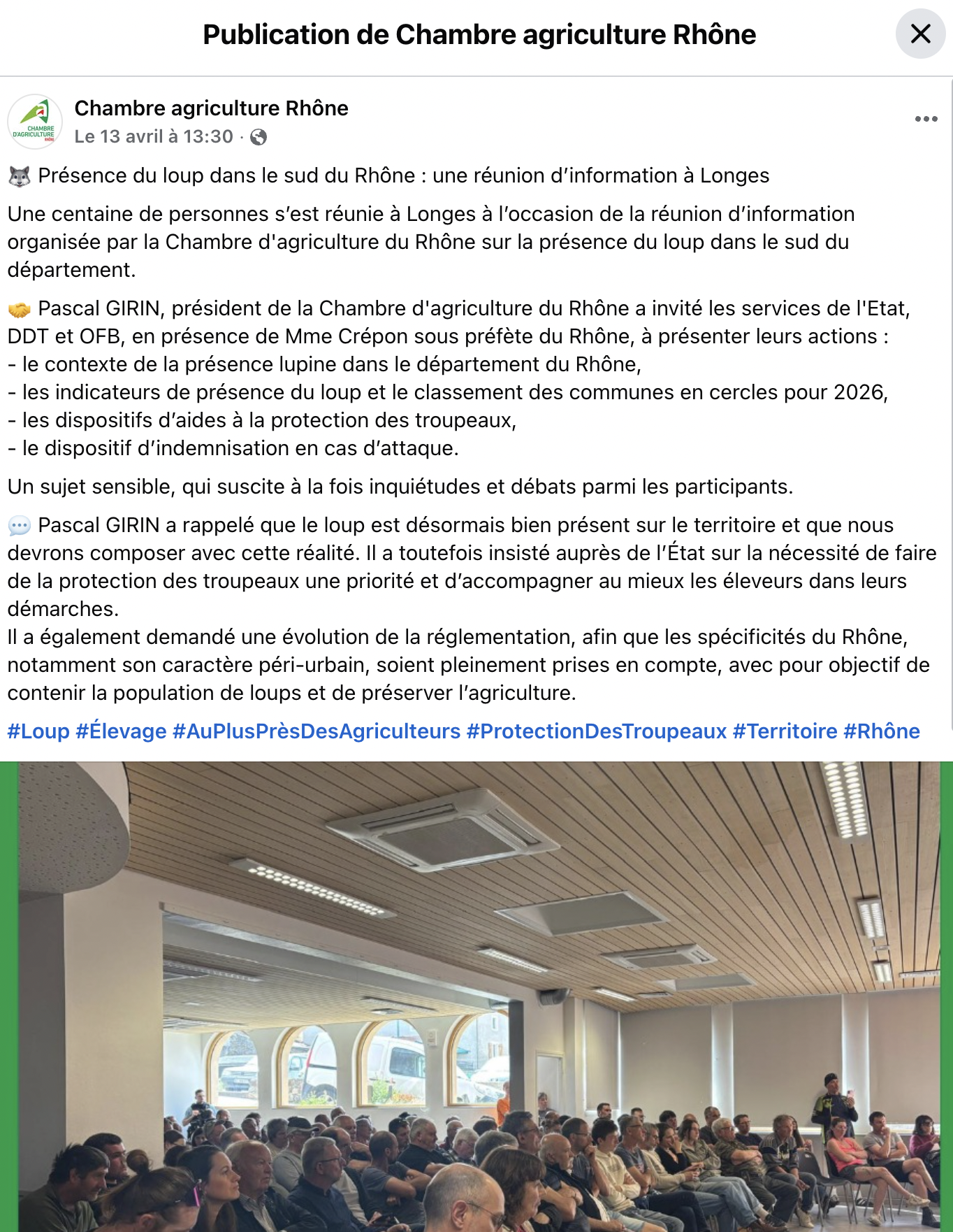Récemment dans un communiqué, la préfecture du Rhône avait reconnu que sur neuf attaques, le loup ne pouvait pas être écarté pour sept d’entre elles, la plupart ayant eu lieu dans le Pilat, aux Haies, à Longes, (voir ci-dessous), etc, avec à la clef, des ovins égorgés.
