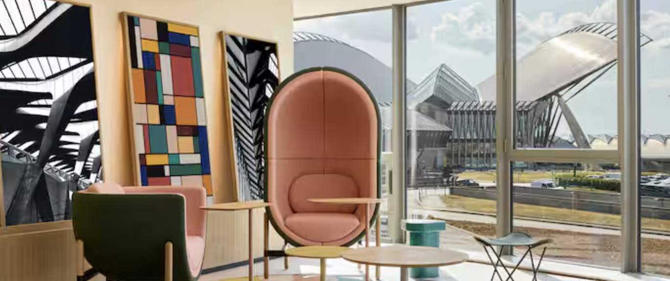 Ce n’est pas une construction nouvelle, mais une réhabilitation : les anciens bureaux d’Aéroport de Lyon ont ainsi mué en un hôtel trois étoiles lifestyle de 120 chambres.