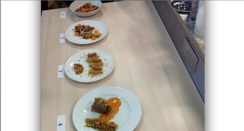 Le plat cuisiné fut ensuite dressé et présenté par les concurrents aux membres du jury, où l’on retrouvait notamment Jean-Yves Curtaud, président de l’Office du Tourisme de Vienne, Eric Marcellat, Maître Restaurateur viennois, ainsi que Cédric Bayle et Franck Brun du restaurant Xtreme à St-Jean-de-Bournay, tous deux également Maîtres Restaurateurs.