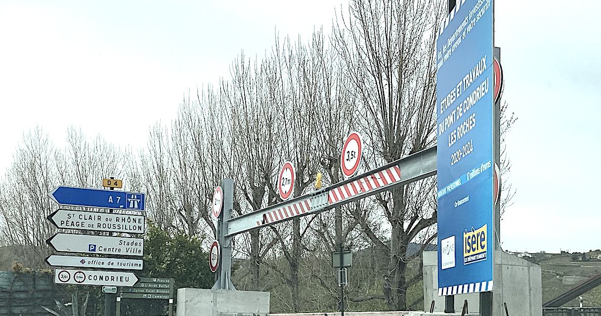 Les poids-lourds ou gros utilitaires sont ainsi contraints d’utiliser un contournement, via notamment le pont barrage de Reventin-Vaugris qu’ils rechignent manifestement à emprunter.
