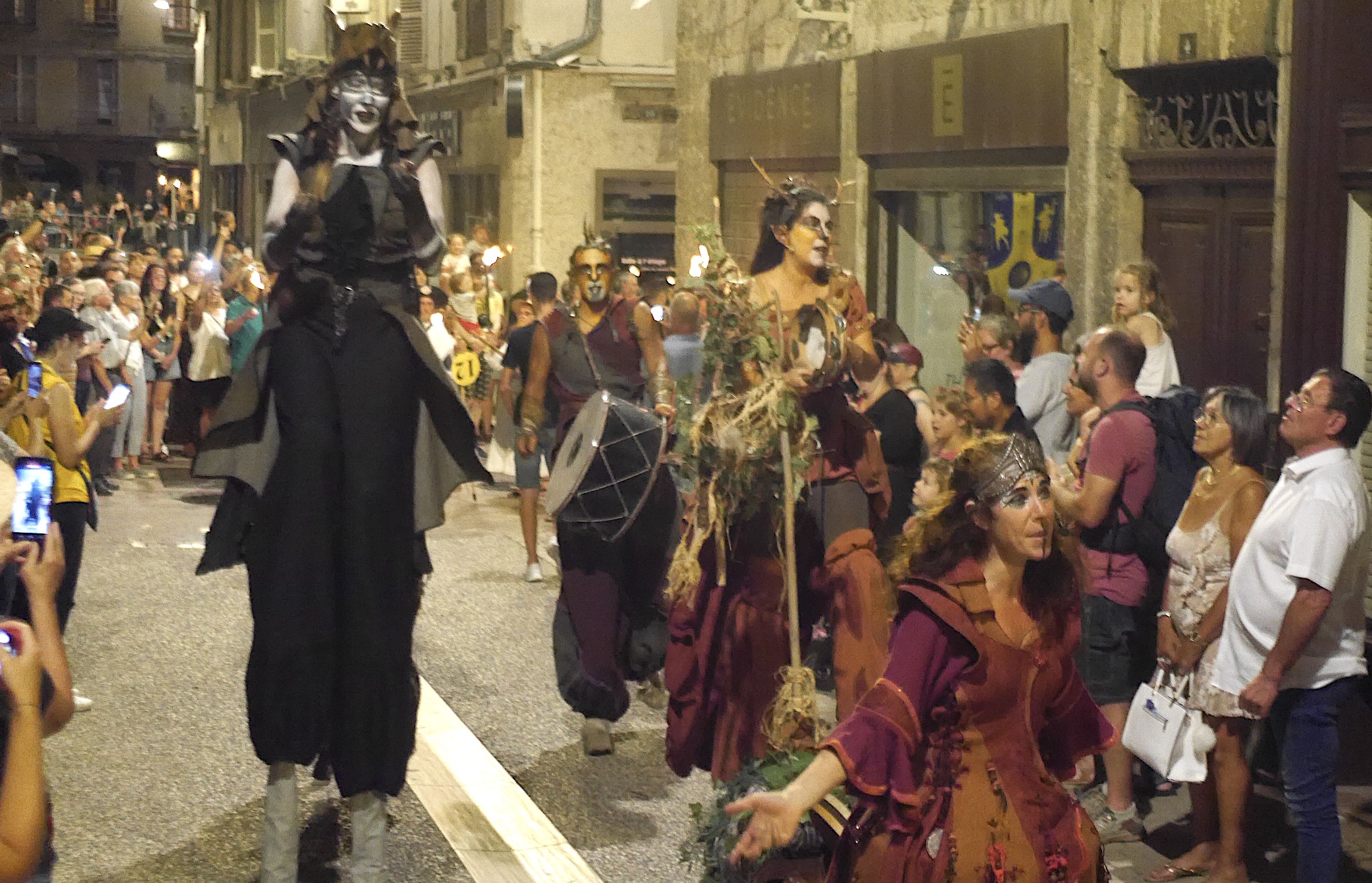Devant un public très nombreux dans la douceur du soir, ce défilé a réuni plus de 500 figurants ! Normal d’ailleurs puisque le nombre de troupes étant plus nombreux cette année, ce défilé très coloré s’est révélé très haut en couleurs suscitant les applaudissement nourris d’un public qui s’était réuni en nombre à partir de 21 heures tout au long d’un parcours restreint au centre historique et notamment à ses rues piétonnes.