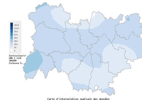 Selon les départements de la région, on recense désormais entre 0 cas à 250 pour 100 000 habitants, avec une moyenne régionale de 171 cas pour 100 000 habitants.
