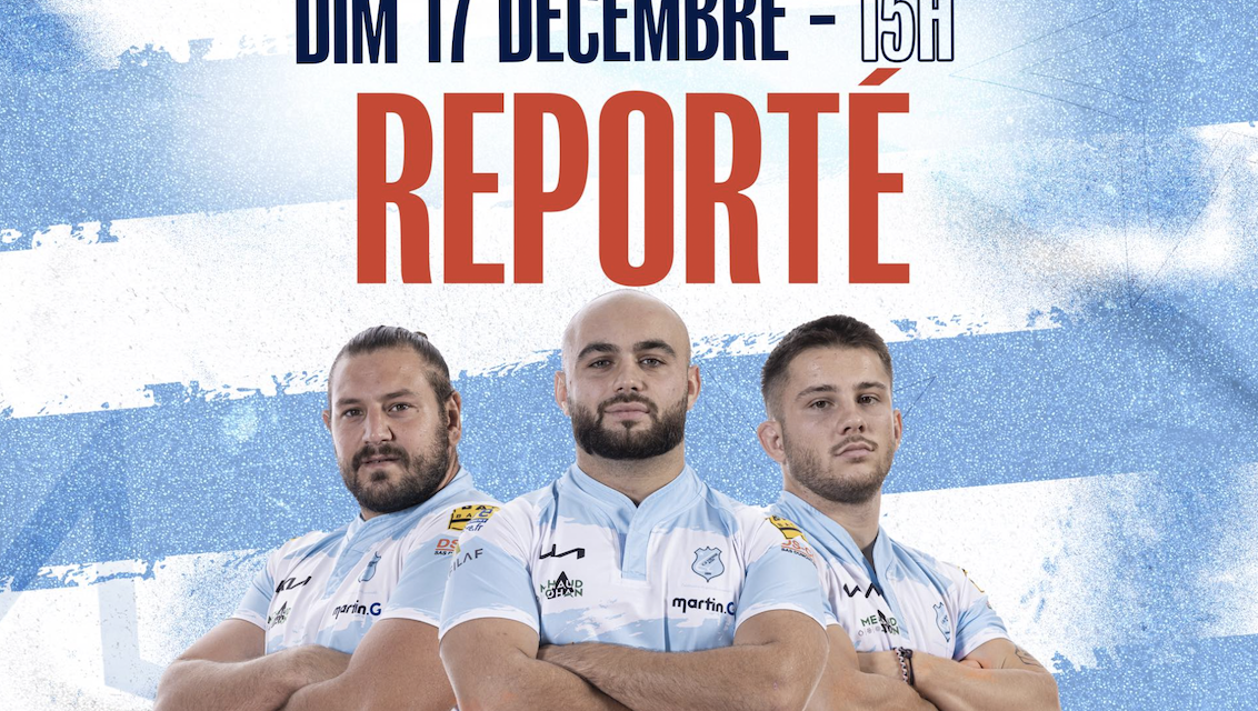 Le match qui était programmé à 15 h contre l’équipe de Blagnac au stade Jean-Etcheberry, dans le cadre de la 14e journée de Nationale, a été reporté.