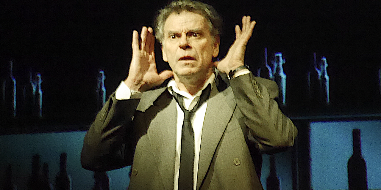 C’est aussi une pièce sur la culpabilité. Jean-Baptiste Clamence, un ex-avocat brillamment interprété donc par Philippe Nesme qui se réfugie dans l’alcool … se confie à un inconnu, dans un bar d’Amsterdam : il raconte qu’il n’a pas bougé le petit doigt, ni alerté qui que ce soit lorsqu’une femme s’est jetée à l’eau d’un pont à 50 m de lui. Une ombre qui le poursuit…