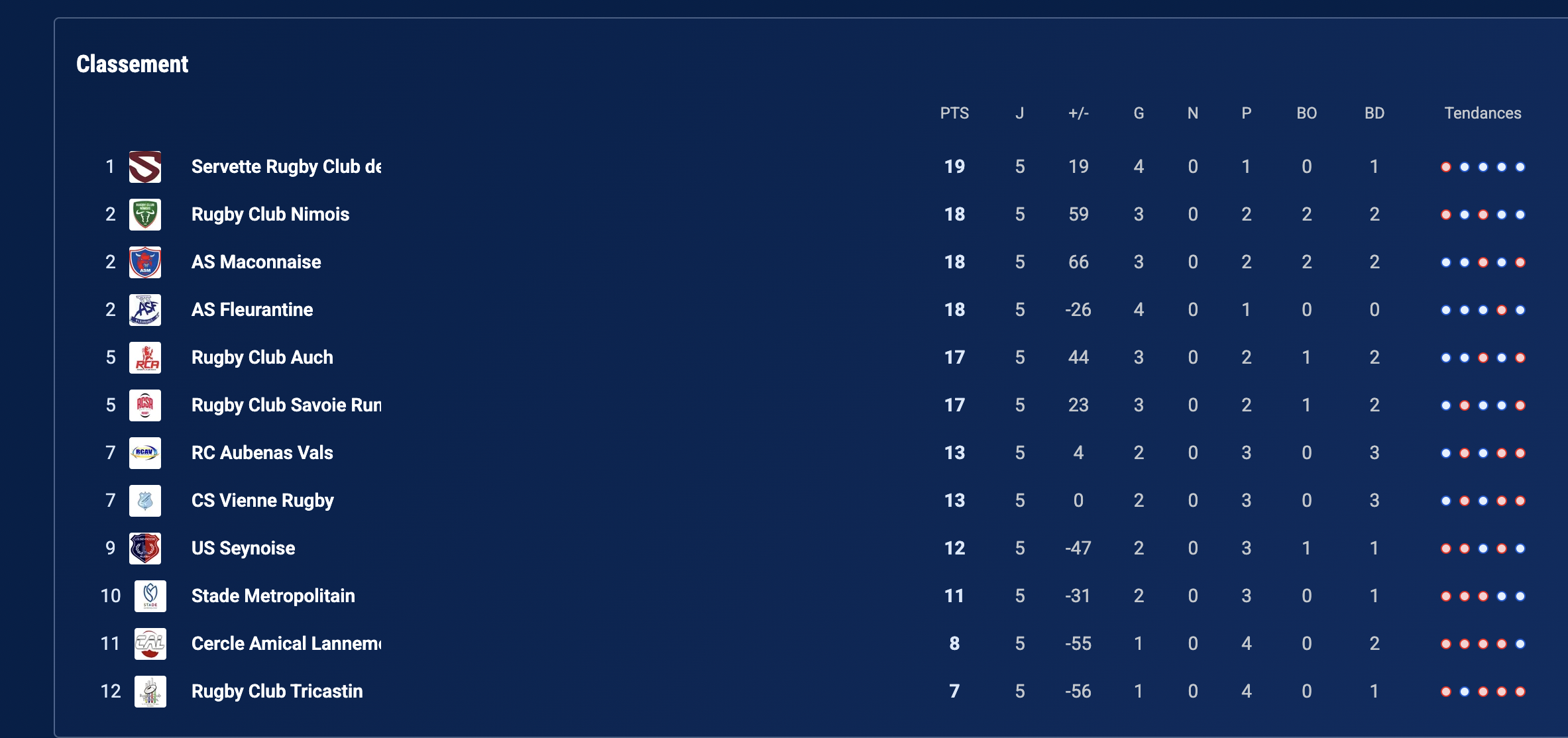 Un succès qui est en tout cas important pour la suite de la compétition qui permet aux Viennois de remonter au classement : à la 7ème place ex-aequo avec Aubenas/Vals. Justement, le prochain adversaire samedi prochain 18 octobre que les joueurs viennois rencontreront sur leur terrain de Jean Etcheberry… L’occasion de monter dans la 1ère partie du tableau ?