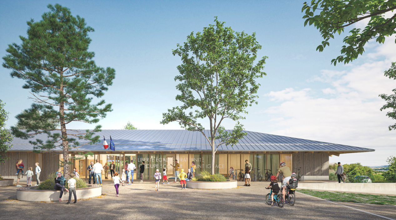 Cette école donc à l’architecture bois, dotée d’un toit en zinc avec de larges débords accueillera un total de dix classes : à raison de quatre classes de maternelle et dix d’élémentaire. En selon les besoins, par ailleurs, six classes supplémentaires pourraient voir le jour à terme.