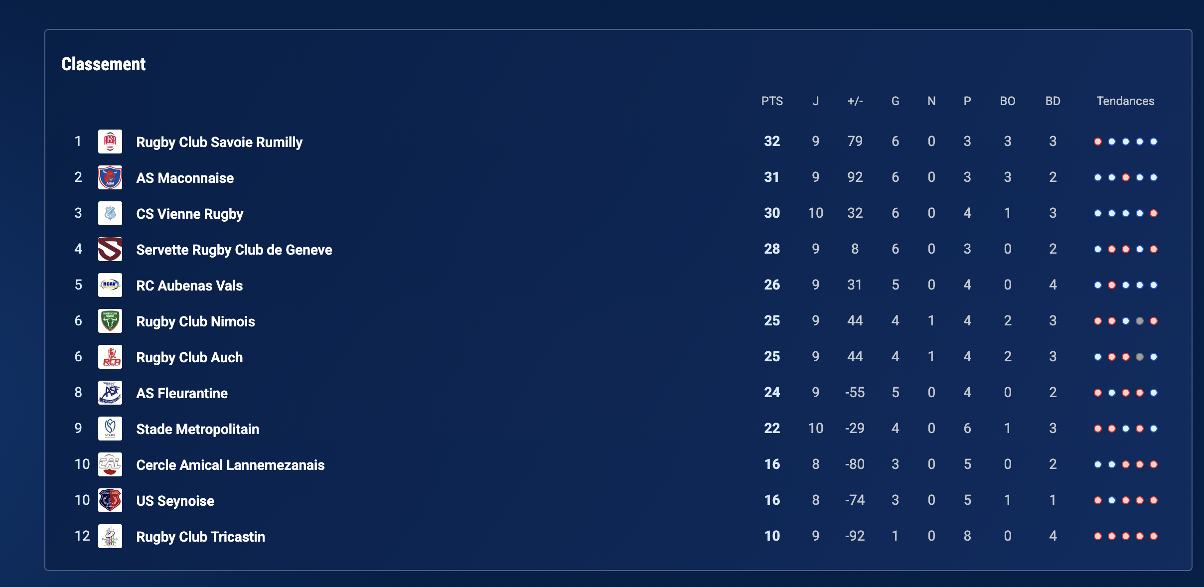 Le prochain match programmé le samedi 6 décembre verra les Ciels et Blancs s’opposer à Mâcon, une équipe située dans le haut de tableau de la poule, bref, un poids-lourd ; mais les Viennois, désormais de plus en plus en confiance peuvent caresser l’espoir de l’emporter. D’autant que le match se jouera sur leur pelouse de Jean Etcheberry.