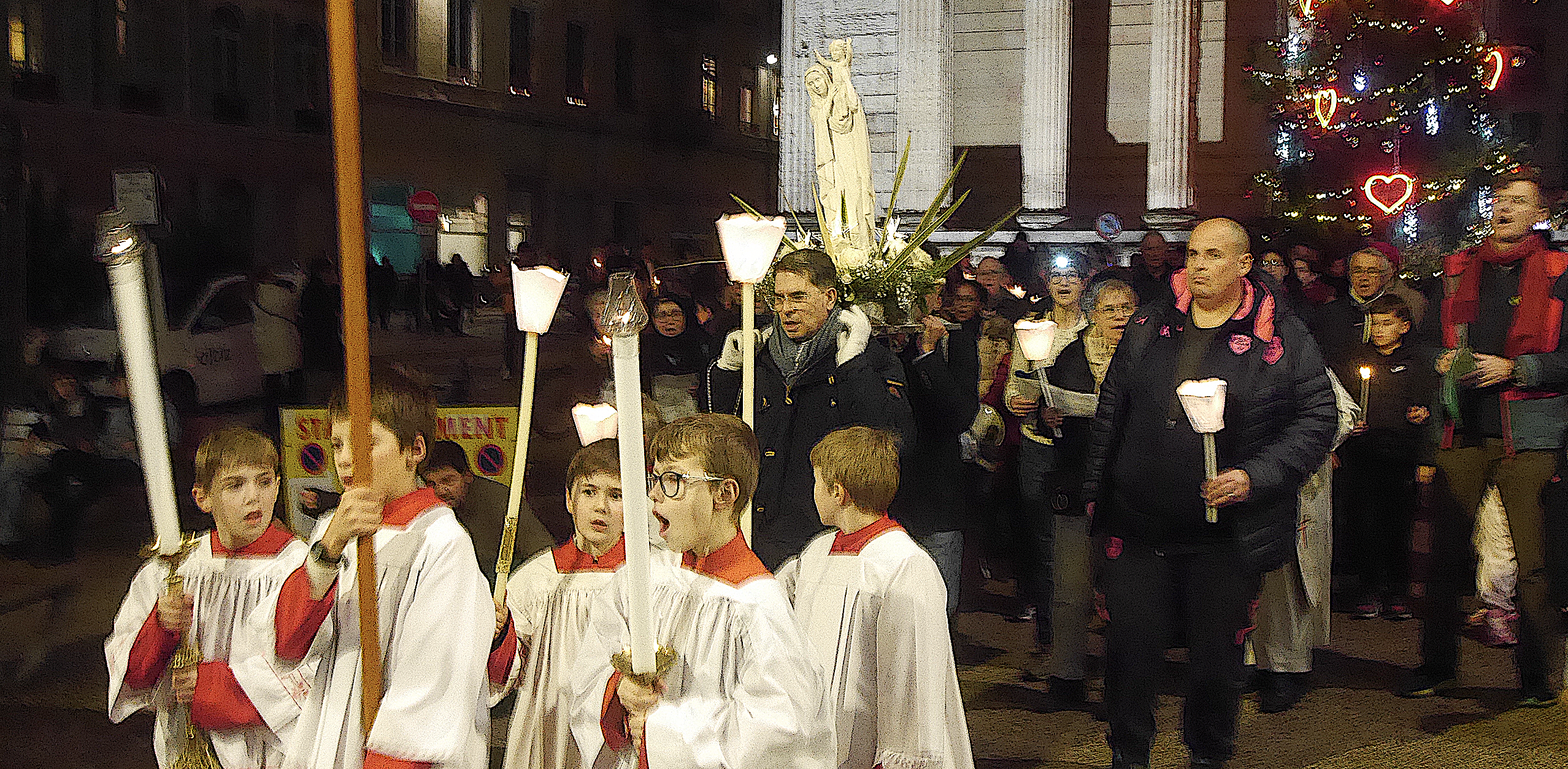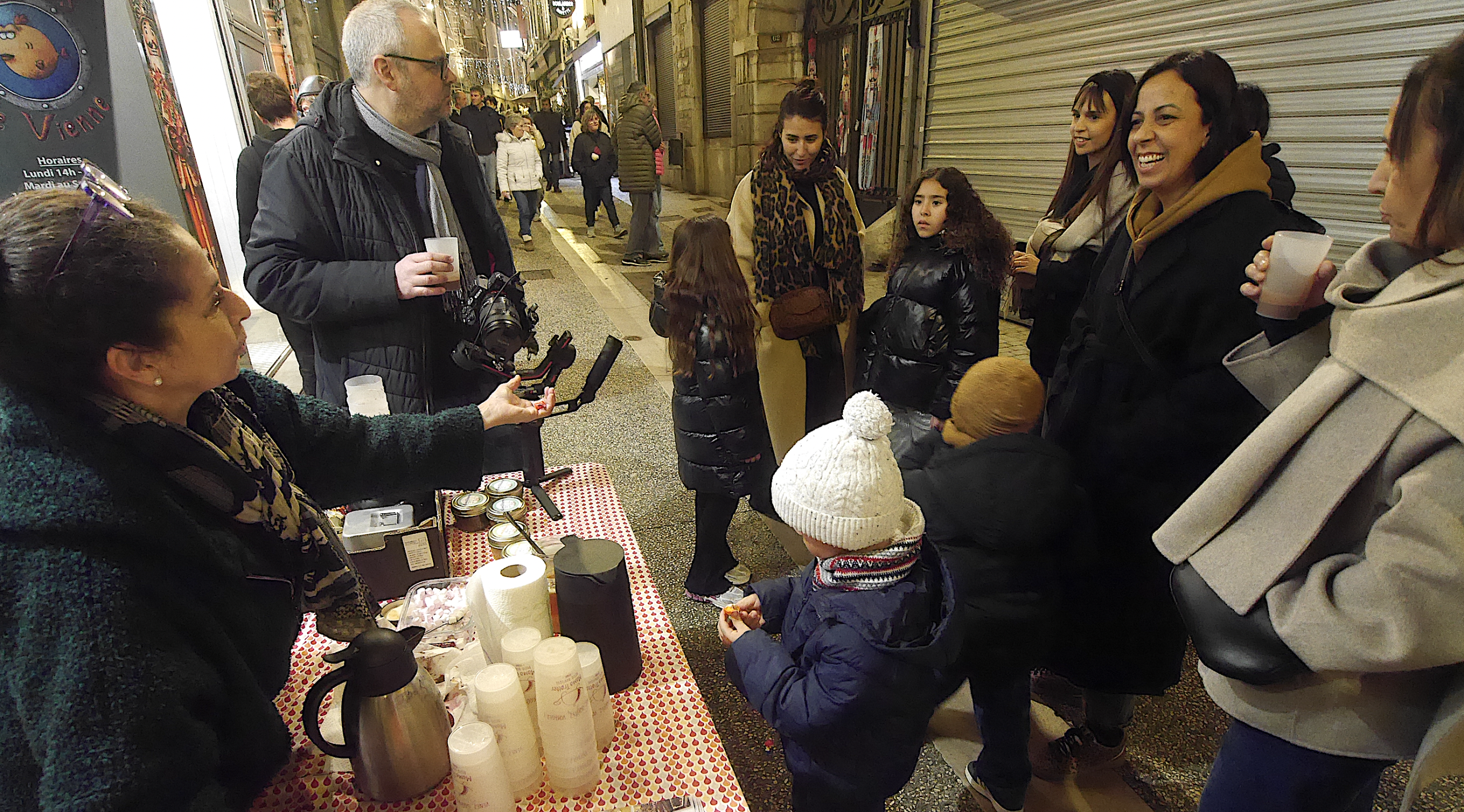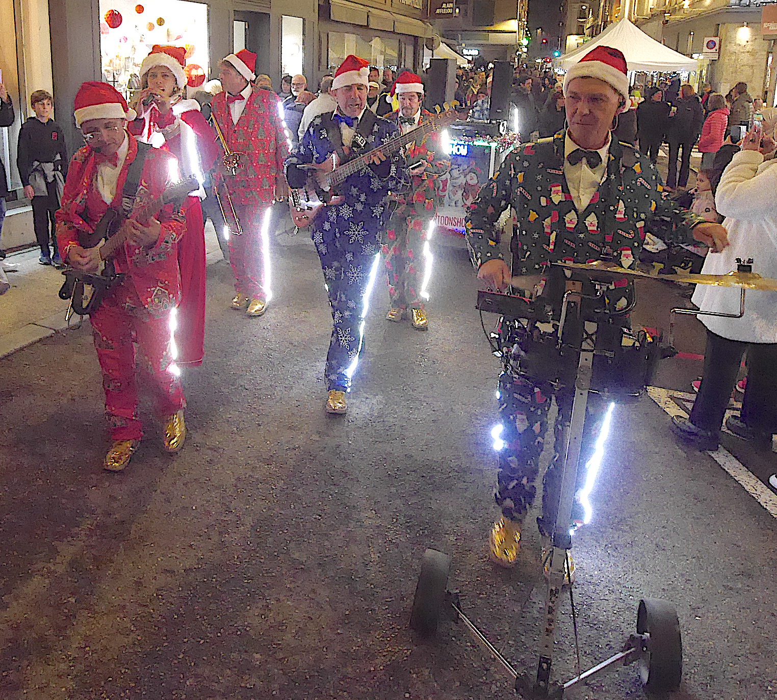 Procession religieuse descendant de Pipet, selon une très, très longue tradition, vierge en tête ; « soupe des chefs », complétée cette année par la « confiture des cheffes » ; stand de mets divers et variés où dominait cette année la raclette ; déambulations musicales jazzy ou moyenâgeuses ; enfants jouant et s’ébattant dans le Jardin du Père Noël, parvis de l’hôtel-de-ville : à Vienne, une nouvelle fois cette année la Fête des Lumières du 8 décembre, n’était pas une, mais multiple.