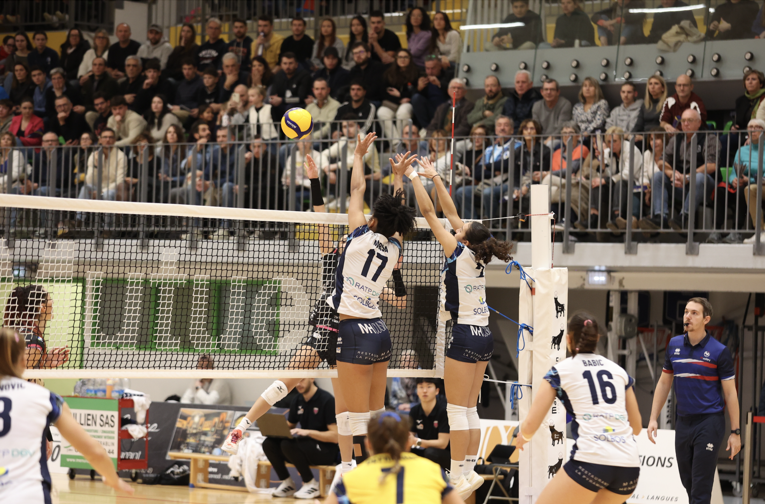 Sur leur parquet de Saint-Romain-en-Gal, en quart de finale de la Coupe de France pro, les Viennoises se sont retrouvées mardi 16 décembre face à une équipe dont la puissance de frappe et la précision technique étaient nettement au dessus d’elles. Elles ont pourtant joué le tout pour le tout dans le 1er set qu’elles ont été à deux doigts de gagner, avant de s’incliner. Place à Rennes ce samedi, encore un gros morceau avant la trêve des confiseurs.