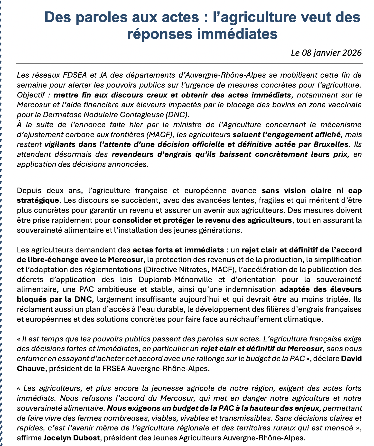 L’on apprend enfin que deux nouvelles manifestations d’agriculteurs sont prévues dans le Nord-Isère demain vendredi 9 janvier.
