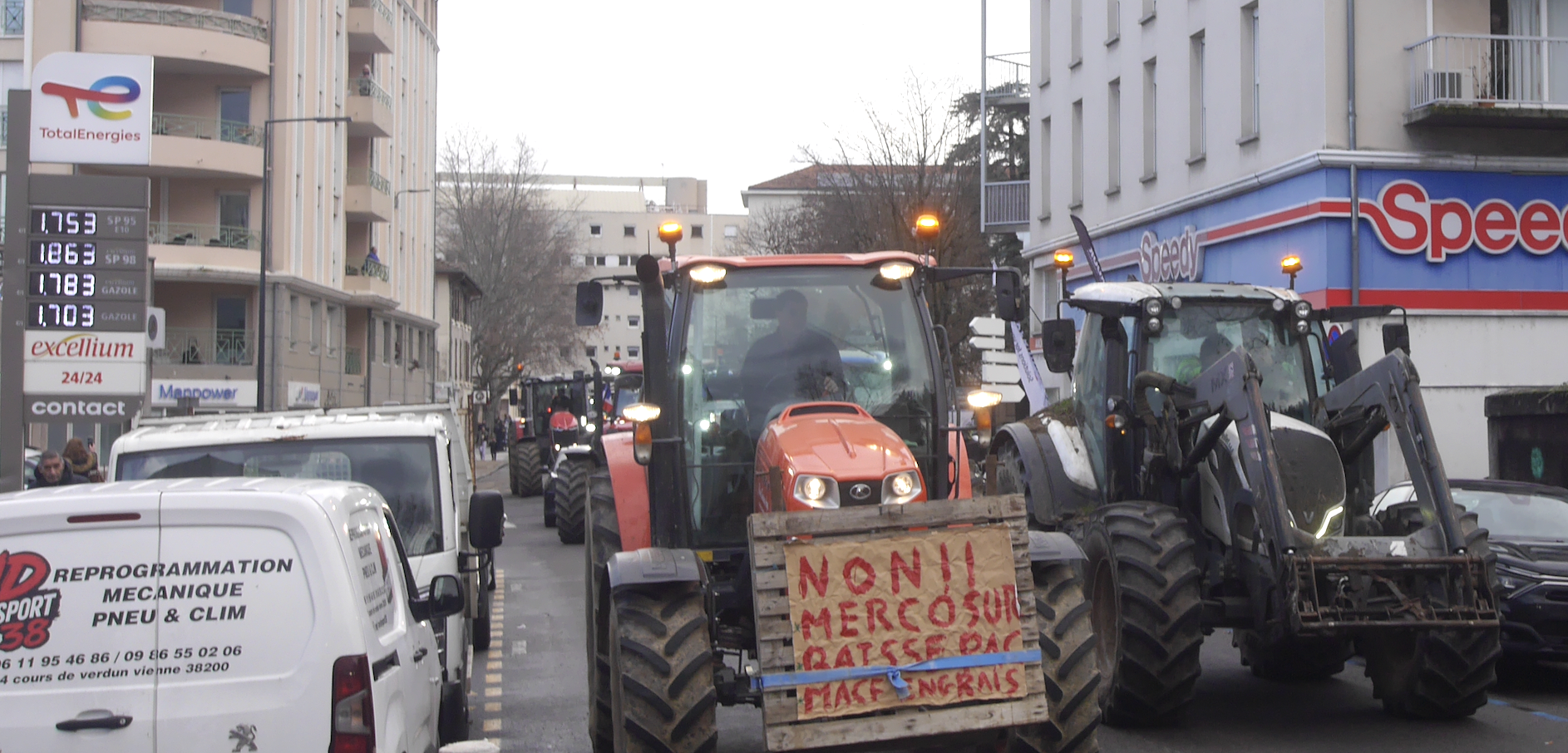 Ils rencontrèrent sur place la députée de la 8ème circonscription, Hanane Mansouri qui a rejoint Vienne juchée sur un des vingt tracteurs ayant à leur bord une quarantaine d’agriculteurs formant le défilé qui traversa Vienne à une vitesse d’escargot.