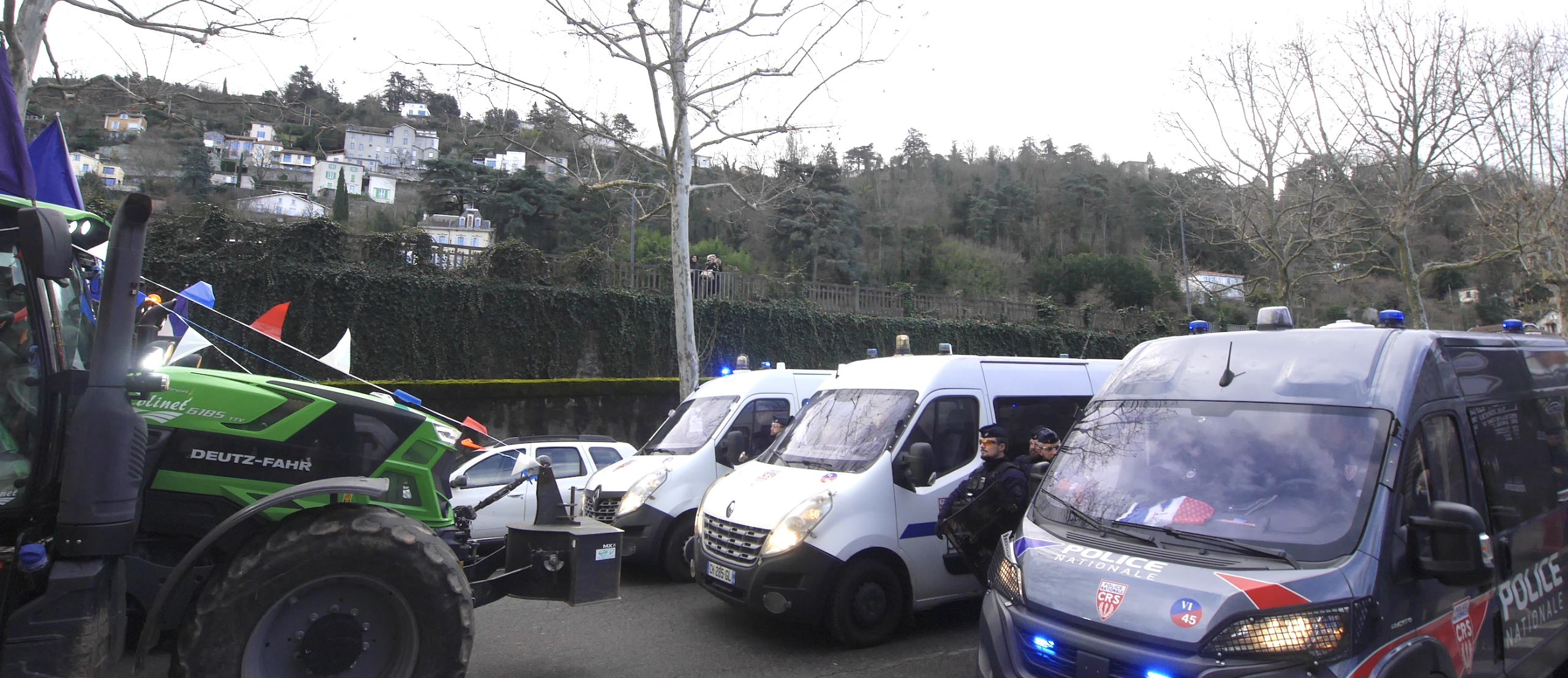 Arrivés cours de Verdun sur deux files, les tracteurs n’eurent d’autre choix que de s’arrêter face aux véhicules de CRS qui barraient cet axe majeur de Vienne depuis plus de deux heures.