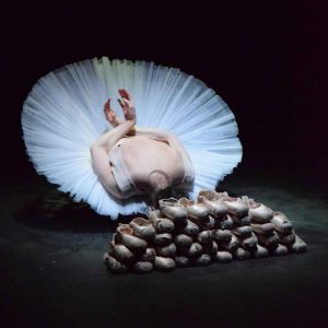 Dans une danse physique à la lisière du contorsionnisme et de la voltige, la danseuse s’acharne et s’applique à se maintenir. Mais les accidents s’enchaînent. Il n’y aura qu’un seul envol, motivé par une longue série de chutes…