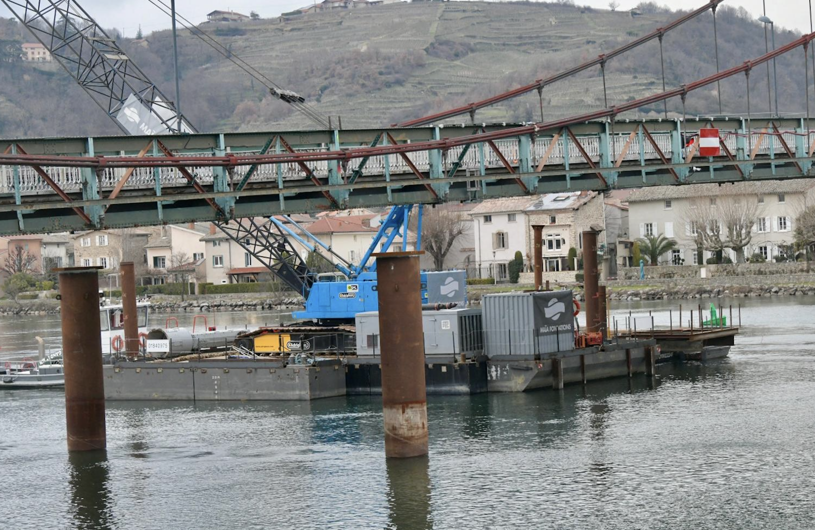 Le chantier sur le Pont de Condrieu qui avait repris le lundi 5 janvier profitant de la faiblesse du débit du Rhône, vient de franchir une nouvelle étape.