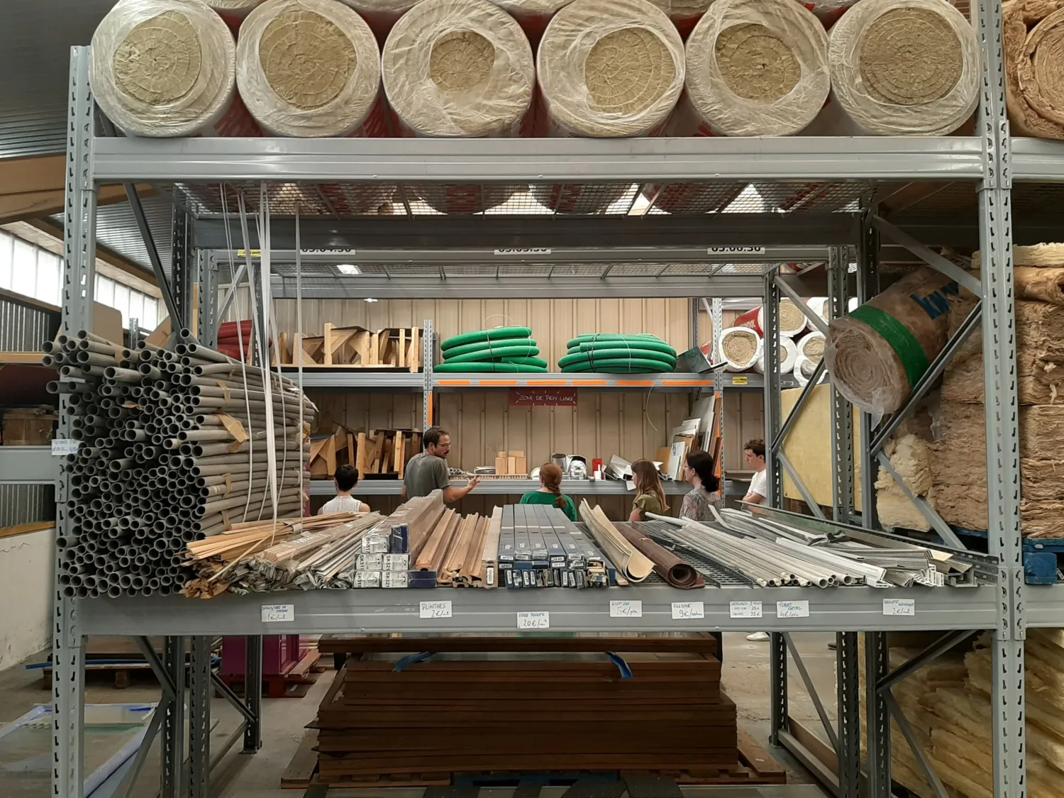 Pour ce faire, Patrick Stefan Reinhert s’est appuyé sur plusieurs sources de matériaux usagés et notamment sur la plus importante plateforme de réemploi du BTP de la région Auvergne-Rhône-Alpes : l’association Minéka, 7 salariés, installée à Villeurbanne.