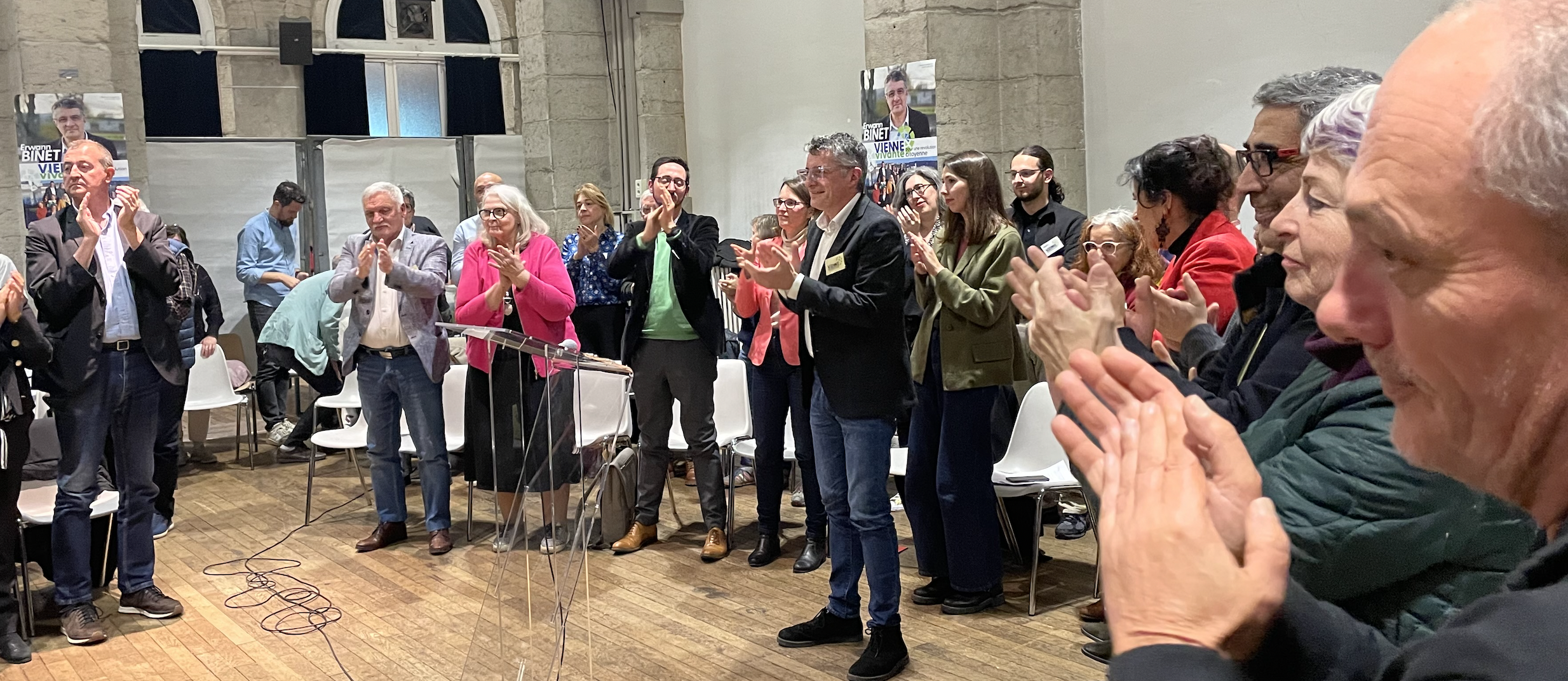 Le dernier meeting de campagne de la liste « Vienne Vivante », menée par Erwann Binet et soutenue par le PS, le PC, les Ecologistes et Place Publique s’est déroulée devant près de 400 personnes survoltées qui avaient pris place à la salle-des-fêtes de Vienne où l’on pouvait notamment reconnaître Christophe Bouvier, le maire PS de Chasse-sur-Rhône et l’Ecologiste Cécile Michel, ancienne candidate aux législatives.
