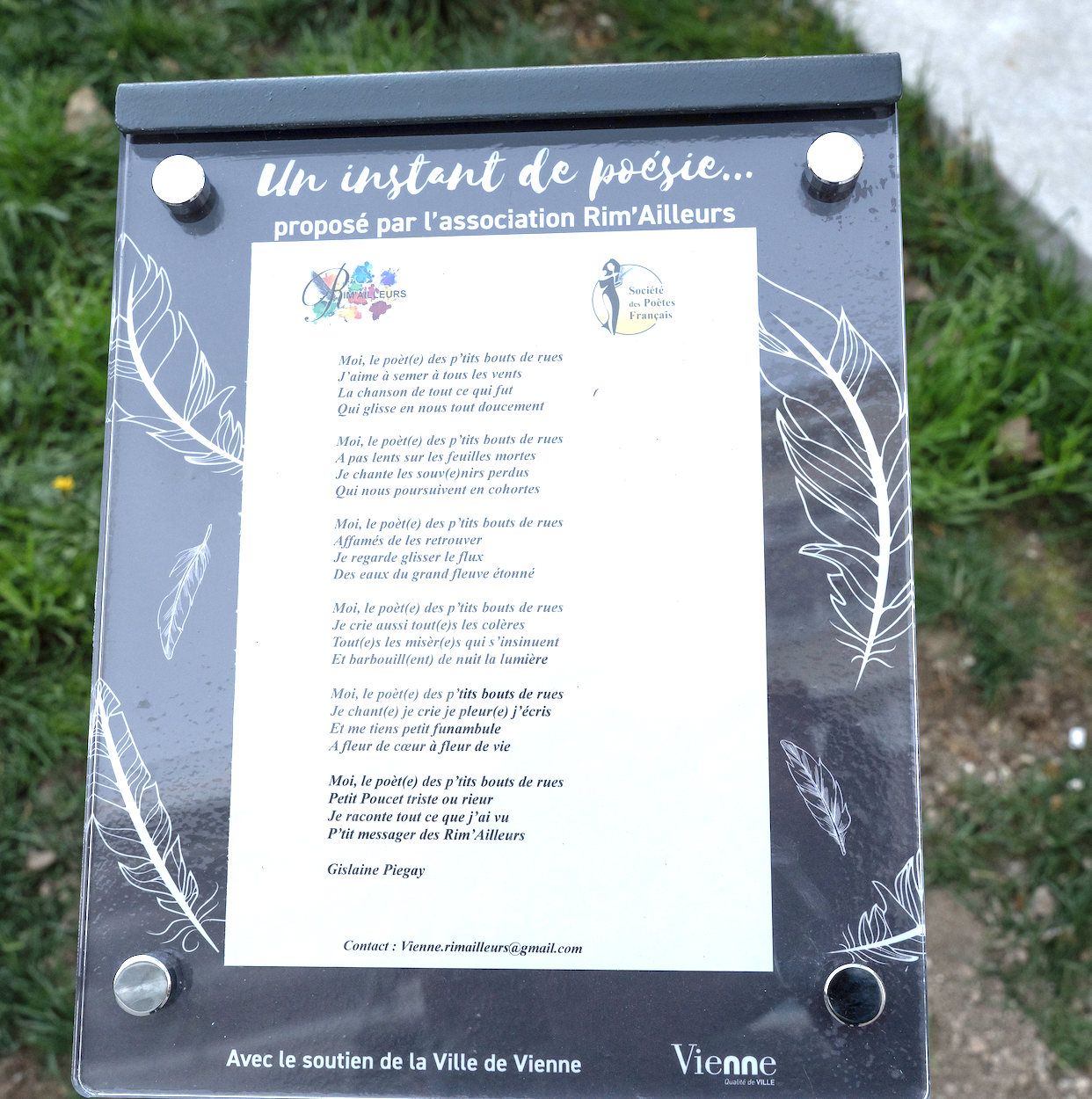 Deux chevalets poétiques sont ainsi désormais installés dans deux lieux très fréquentés de Vienne : le Jardin de Ville et le Jardin de Cybèle.