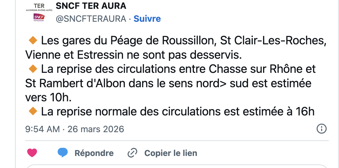 En tout cas, grâce à leur proximité, leur caserne étant toute proche, les équipes du SDIS (Service Départemental d’Incendie et de Secours) de Vienne étaient sur place pour intervenir dans les minutes qui ont suivi afin d’assurer la sécurité des voyageurs et organiser leur prise en charge.