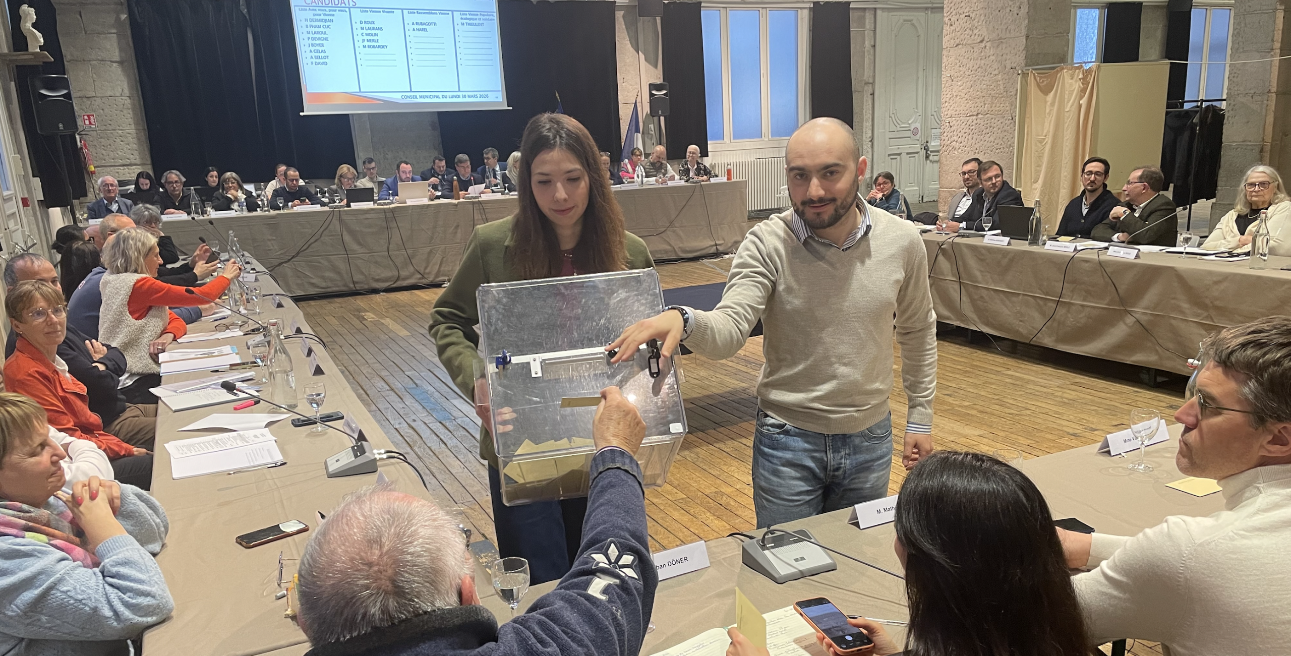 Plus de trois heures ! Le deuxième conseil municipal de la Ville de Vienne post élections, après le dernier en date consacré à l’installation du maire, des adjoints et des conseillers délégués, s’est révélé, lundi 30 mars particulièrement dense. Il faut que le fonctionnement de la municipalité reparte sur ses nouvelles bases : les élus ont ainsi voté pour élire les conseiller municipaux siégeant dans cinq commissions municipales, mais aussi pour désigner les représentants du conseil municipal dans de très nombreux organismes, de l’hôpital, aux différents conseils d’école, etc. Le tout avec en sus un débat d’orientation budgétaires, nous y reviendrons.